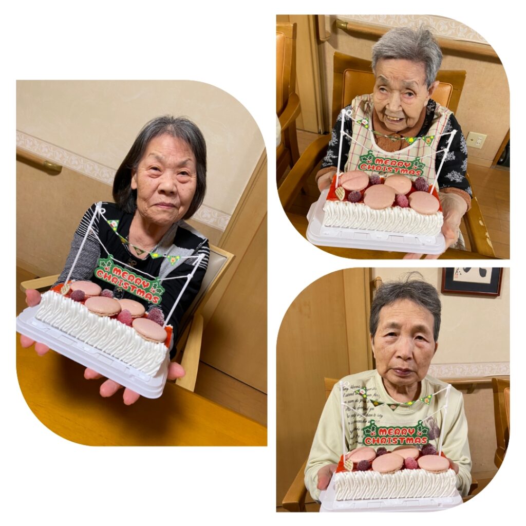 🌳庄の里🌳 メリークリスマス🍰 投稿日 2026年1月17日 著者 dream21_staff カテゴリー スタッフブログ 特製クリスマスケーキと一緒に記念撮影をしました📷 マカロンが添えてあり、とってもかわいらしいクリスマスケーキでした(*´▽`*) (GH庄の里)